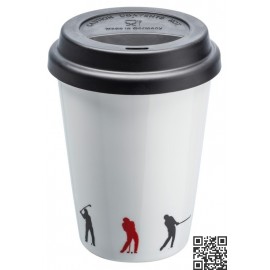 Vaso para Llevar Café (380ml) con tapa. Estampado con motivos de Golf. Llévate el café al trabajo! Con este pequeño recipiente To Go podrás llevarte tu ritual cafetero o infusión de té donde quieras.