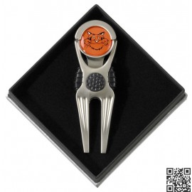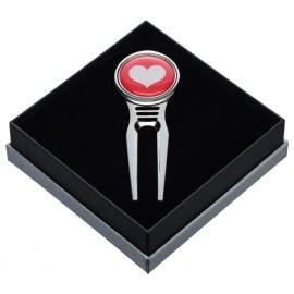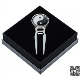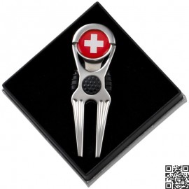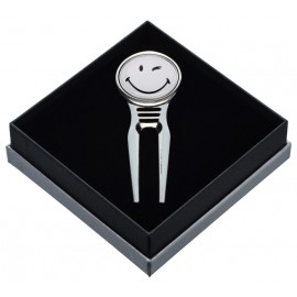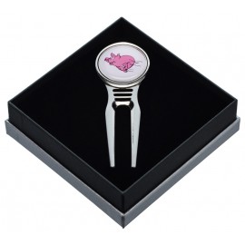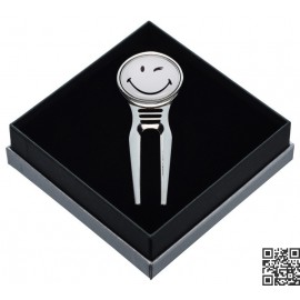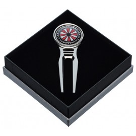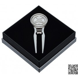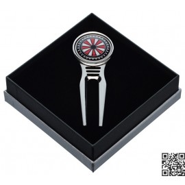 Reparapiques de diseño de golf con marcador de bolas incorporado. Producto hecho en acero inoxidable de de alta calidad. Reparapique viene envasado en una caja elegante, ideal para regalo.